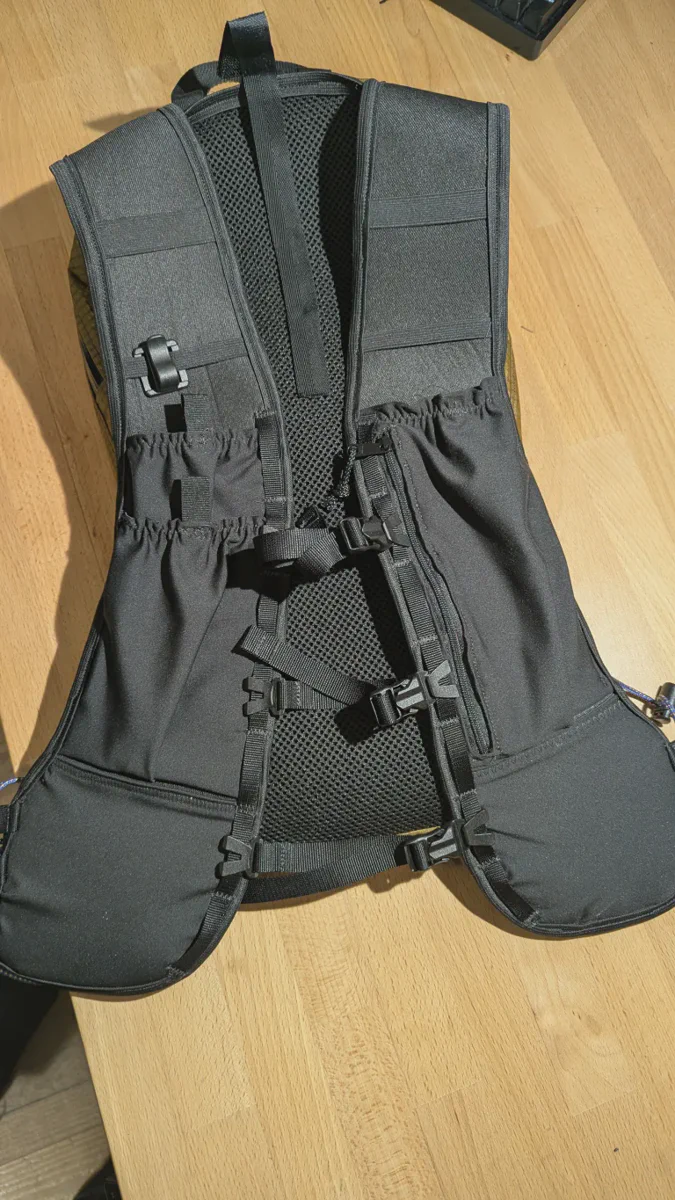 Vest Style Shoulder Straps that hug your body for a secure and comfortable fit. 6 pockets per strap. Lace up side compression for fine tuning the fit, with instructions for alternative attachment methods.